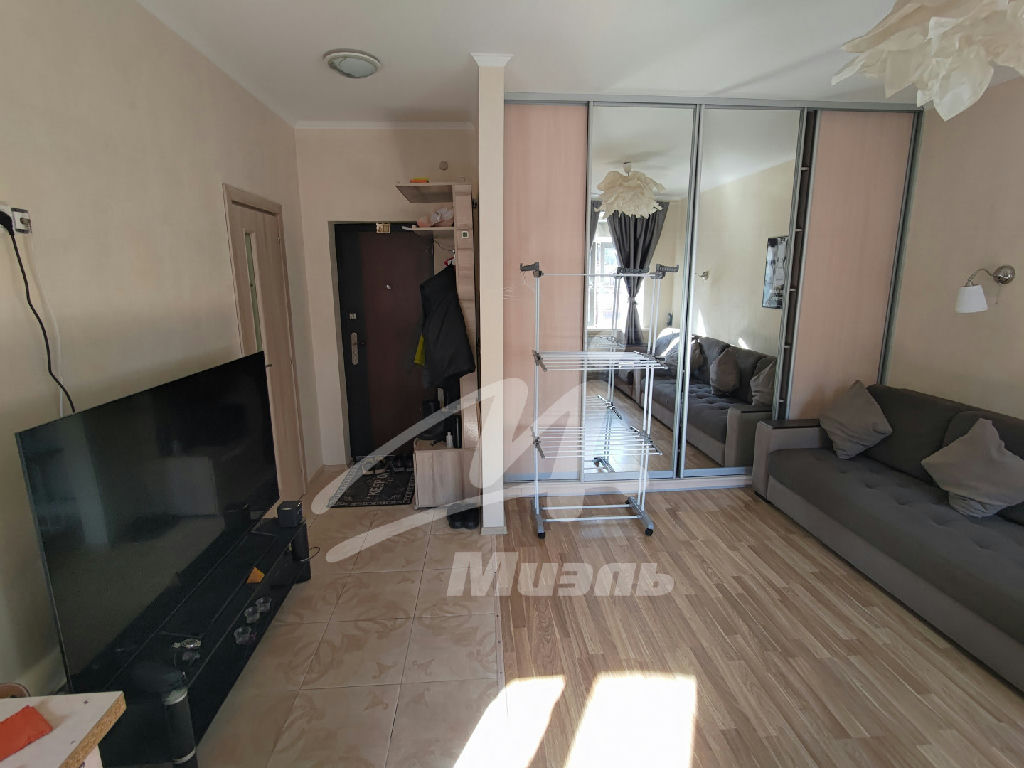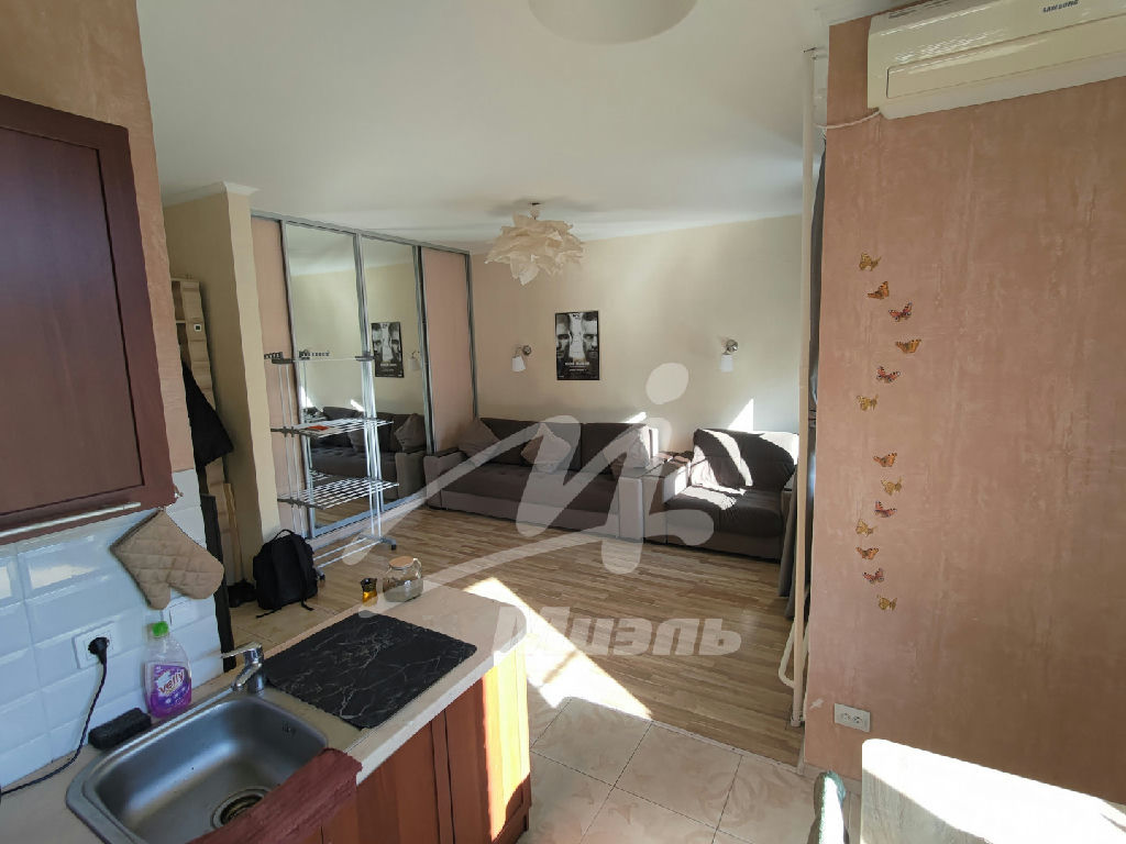 Преимущества этой студии:Продуманная планировкаОкна выходят на солнечную сторону, в квартире очень светло.Оборудована кондиционером можно создать и поддерживать желаемый микроклимат Просторная комната с большим встроенным шкафом-купе много места для храненияКонструктивно выделенная, оборудованная техникой кухня.Объединённый санузел, с ванной, душевой и стиральной машинойКвартира чистая, ухоженная, не требует вложенийСобственный балкон с обширным видом во двор.Хорошая звукоизоляция, спокойная локация Большой и тихий лифт Высота потолка 2,8м
